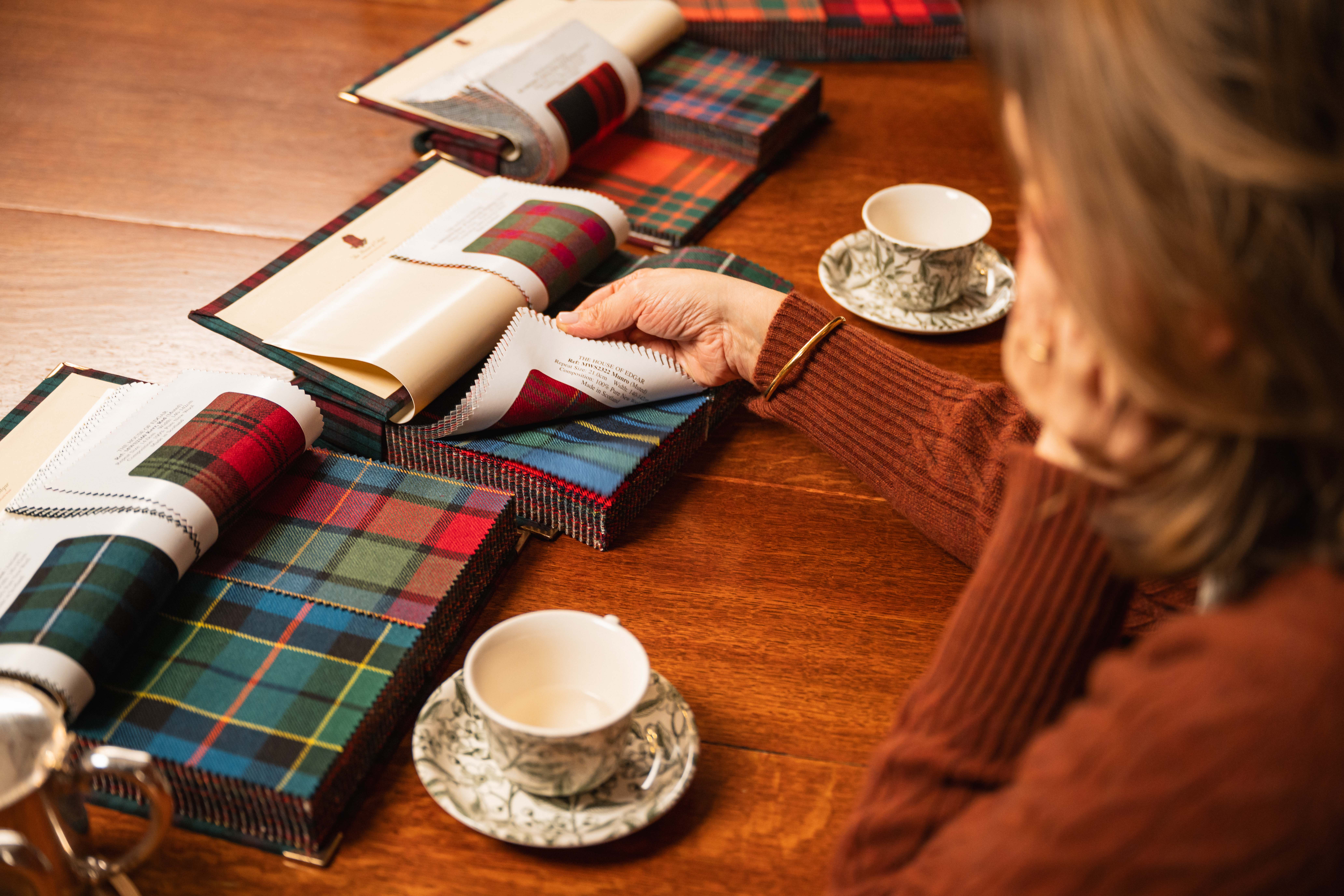 Hamish and his team will work, hand in hand, to create your very own tartan brief. Everyone will have their own story to tell and by referencing older tartans and family traditions we can harness your imagination of colour, depth and texture to create your very own family tartan.